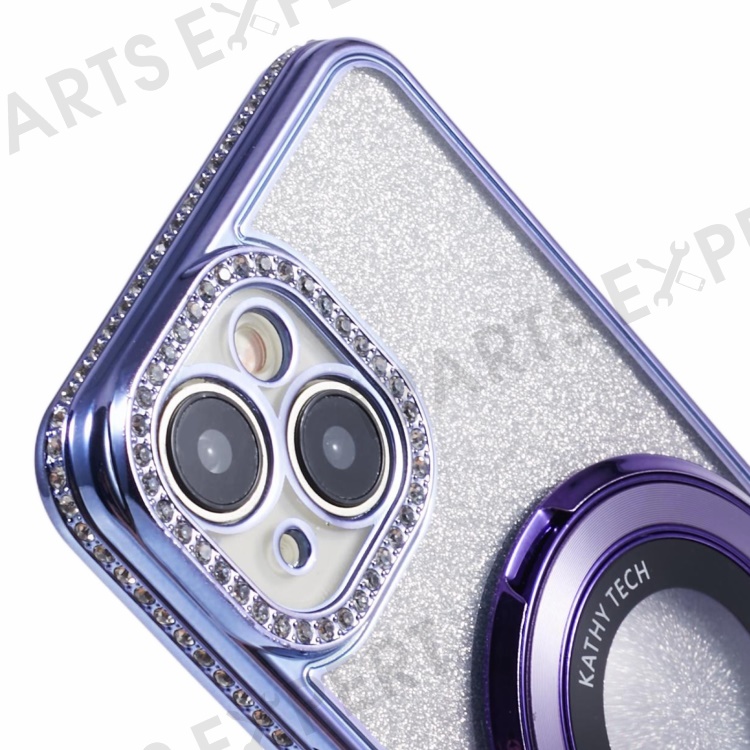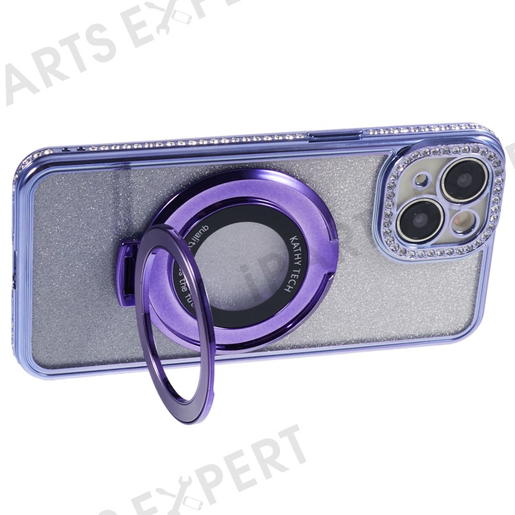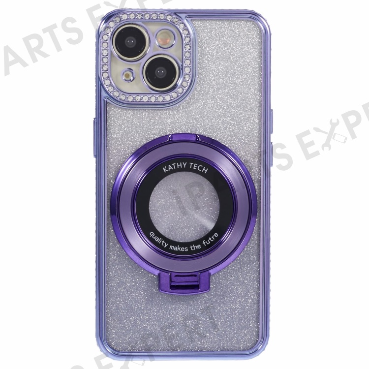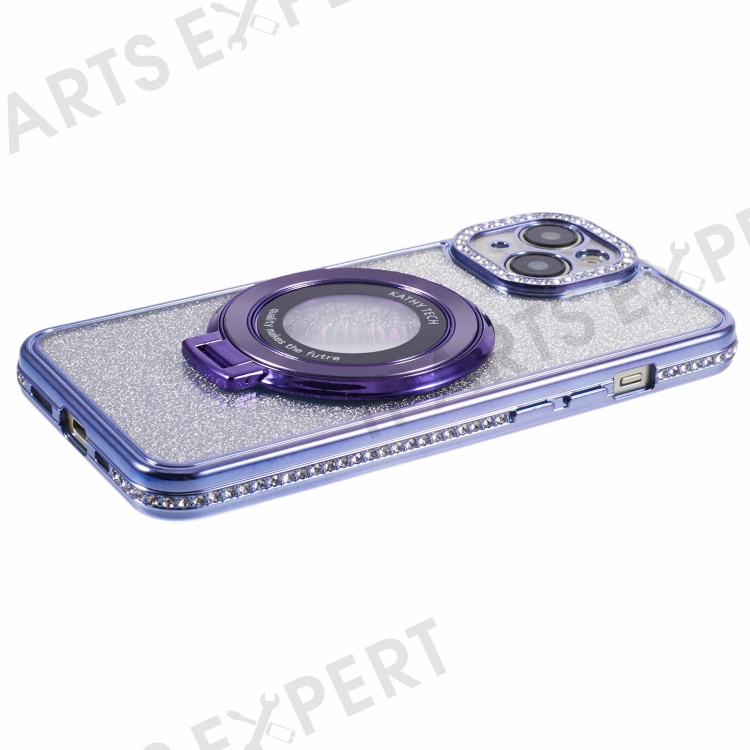 For iPhone 15 Case Ring Kickstand TPU Phone Cover with Rhinestone Decor - Dark Purple