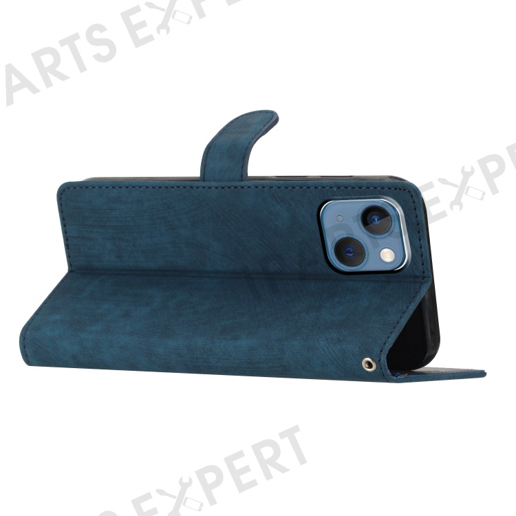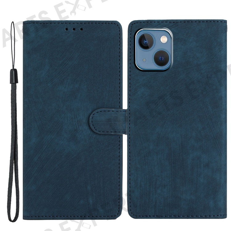 For iPhone 15 Dustproof Phone Cover PU Leather Wallet Slim-Fit Stand Skin-touch Mobile Phone Case - Blue