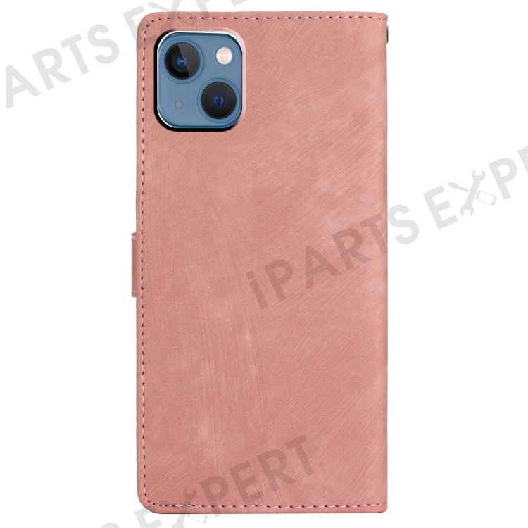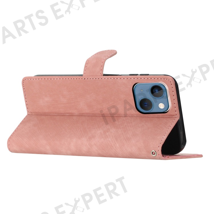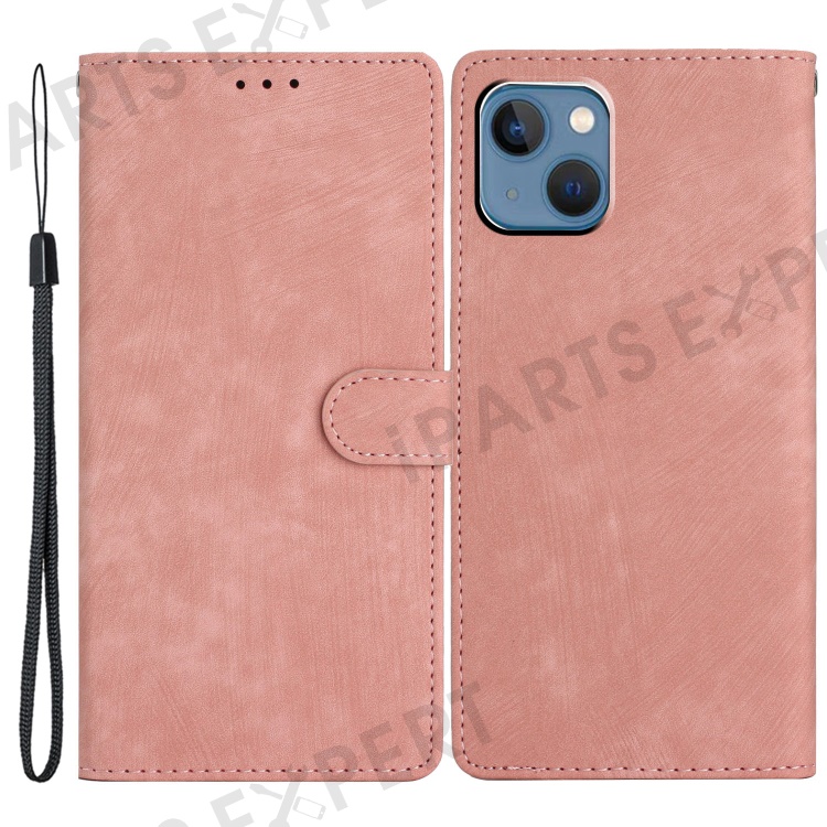 For iPhone 15 Dustproof Phone Cover PU Leather Wallet Slim-Fit Stand Skin-touch Mobile Phone Case - Rose Gold