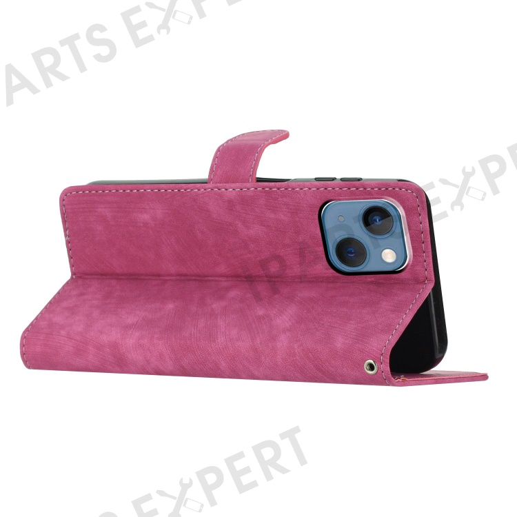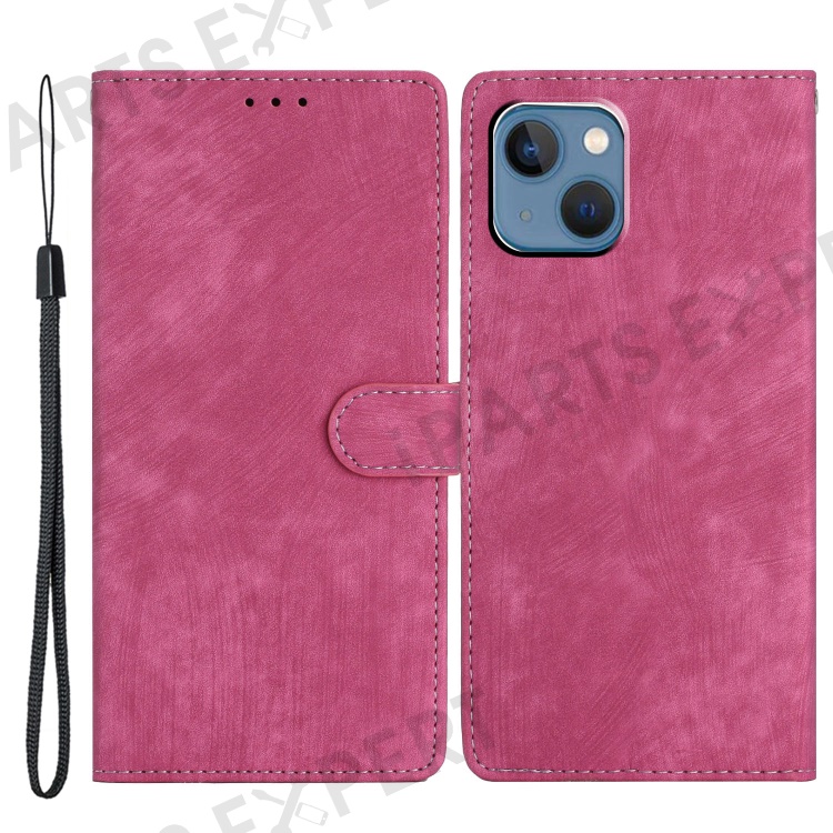 For iPhone 15 Dustproof Phone Cover PU Leather Wallet Slim-Fit Stand Skin-touch Mobile Phone Case - Rose