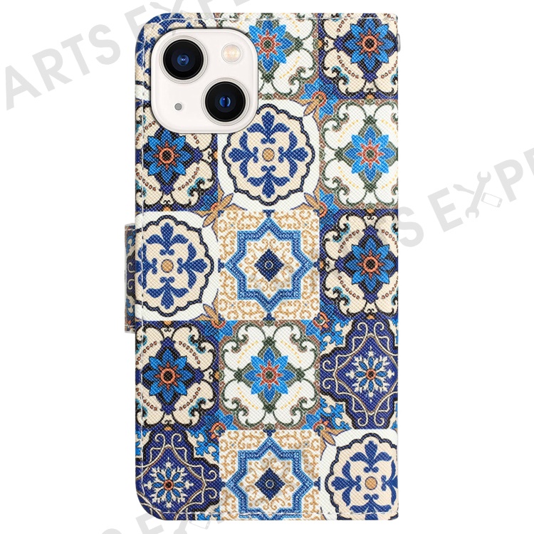 For iPhone 15 Pattern Printing Flip Wallet Case PU Leather Stand Phone Cover with Strap - Retro Totem
