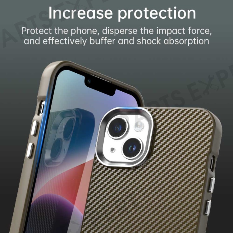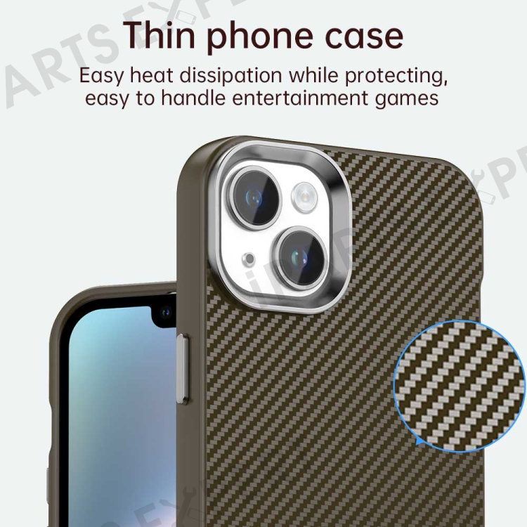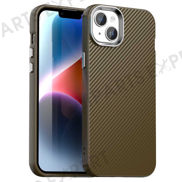 For iPhone 15 Plus / 14 Plus Case Cell Phone Hybrid Back Cover Carbon Fiber Texture - Brown