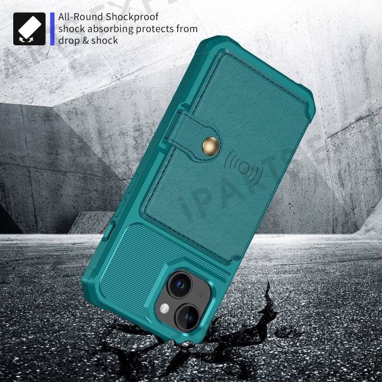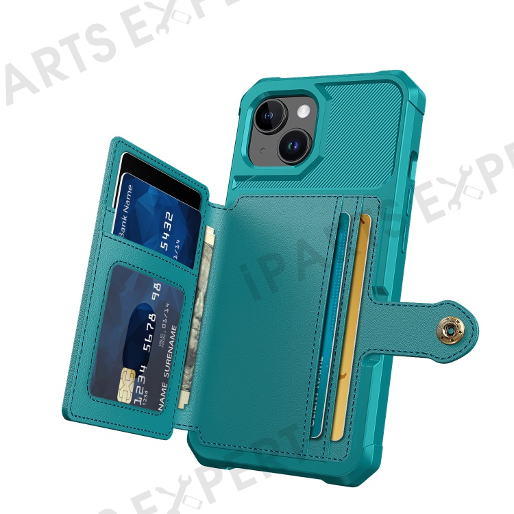 For iPhone 15 Plus Card Slots Wallet Phone Case PU Leather+TPU Anti-fall Cover Support Magnetic Car Mount - Green