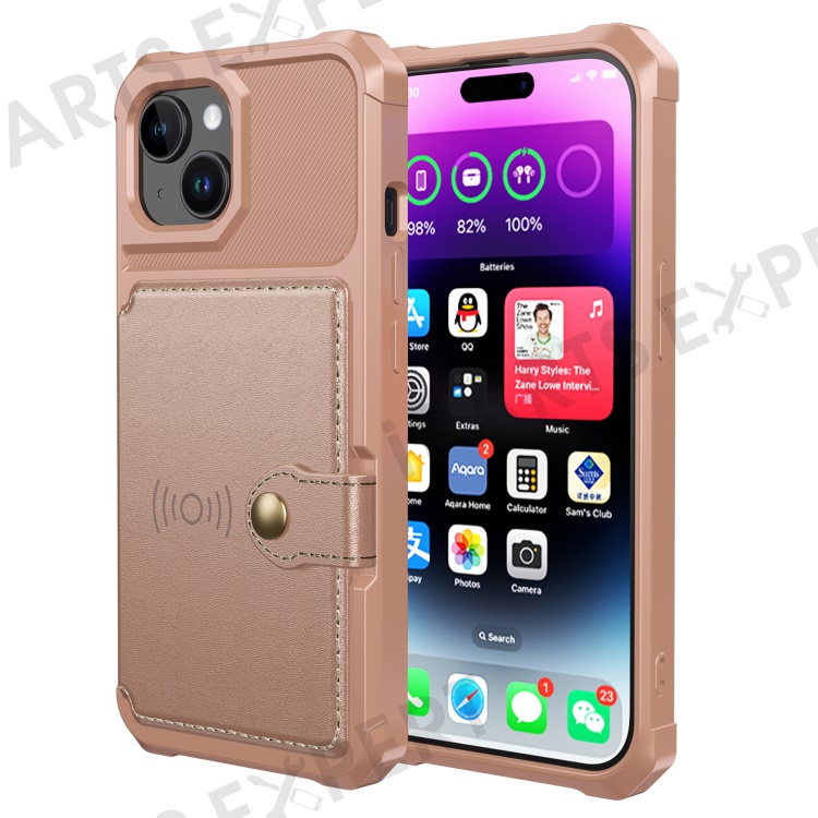 For iPhone 15 Plus Card Slots Wallet Phone Case PU Leather+TPU Anti-fall Cover Support Magnetic Car Mount - Pink