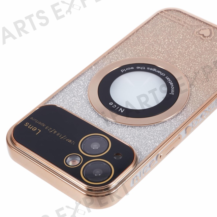 For iPhone 15 Plus Case Compatible with MagSafe Electroplating Slim TPU Phone Cover - Gold
