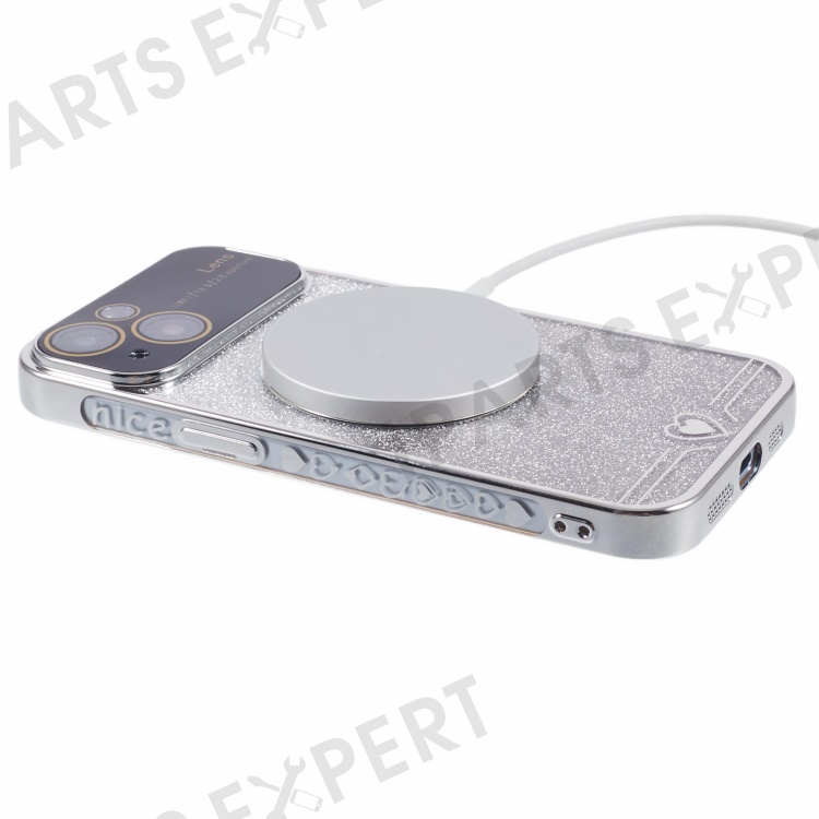 For iPhone 15 Plus Case Compatible with MagSafe Electroplating Slim TPU Phone Cover - Silver