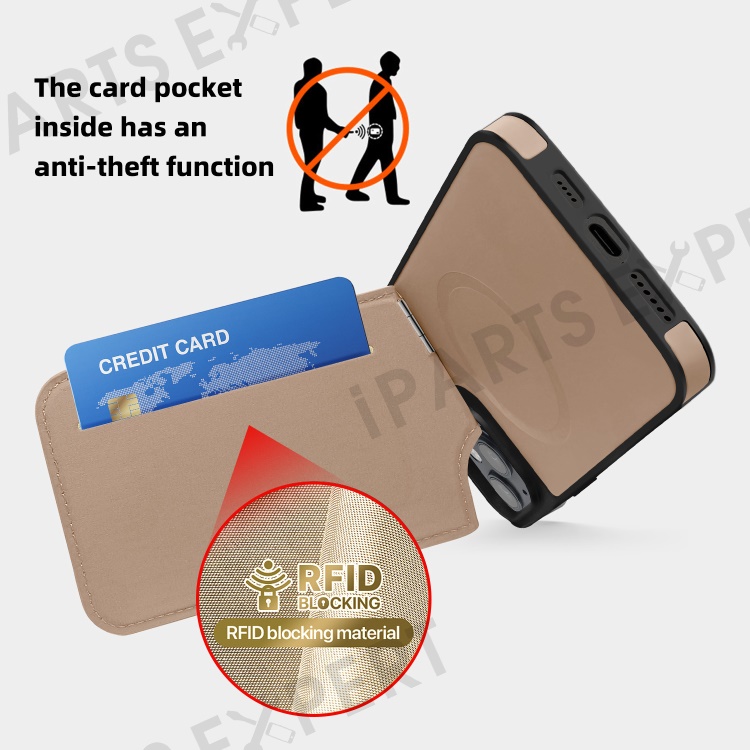 - RFID Blocking Protection: The card pocket is equipped with RFID blocking material, providing an anti-theft function to keep your cards safe from unauthorized scanning