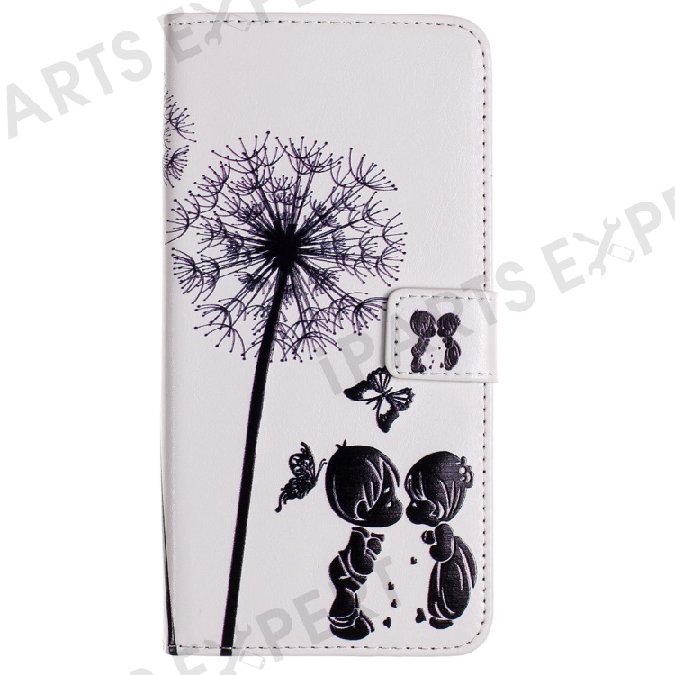 For iPhone 15 Plus Leather Case Pattern Printing Stand Wallet Phone Cover - Kids and Dandelion