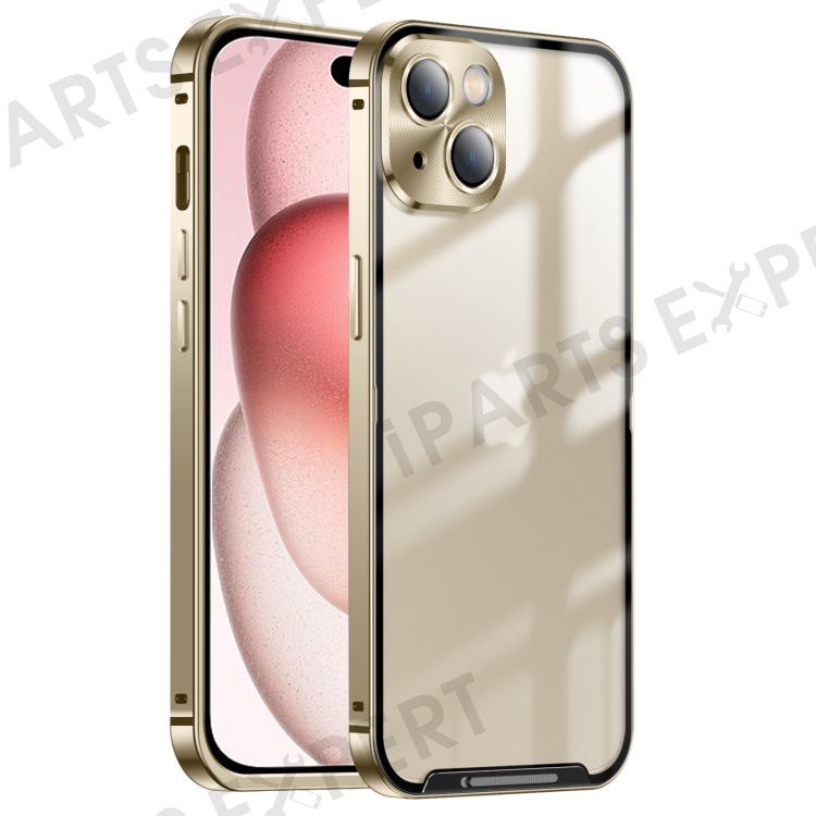 For iPhone 15 Plus Matte Case Anti-Scratch Aluminium Alloy Frame Phone Cover with Lens Protector - Gold
