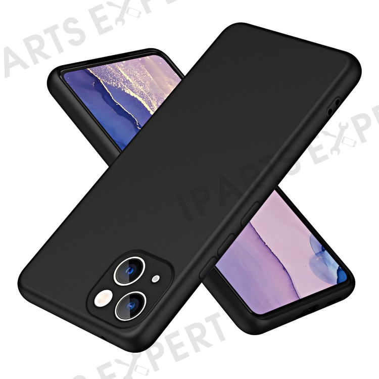 For iPhone 15 Plus Phone Case Rubberized Soft TPU Fiber Lining Back Cover - Black