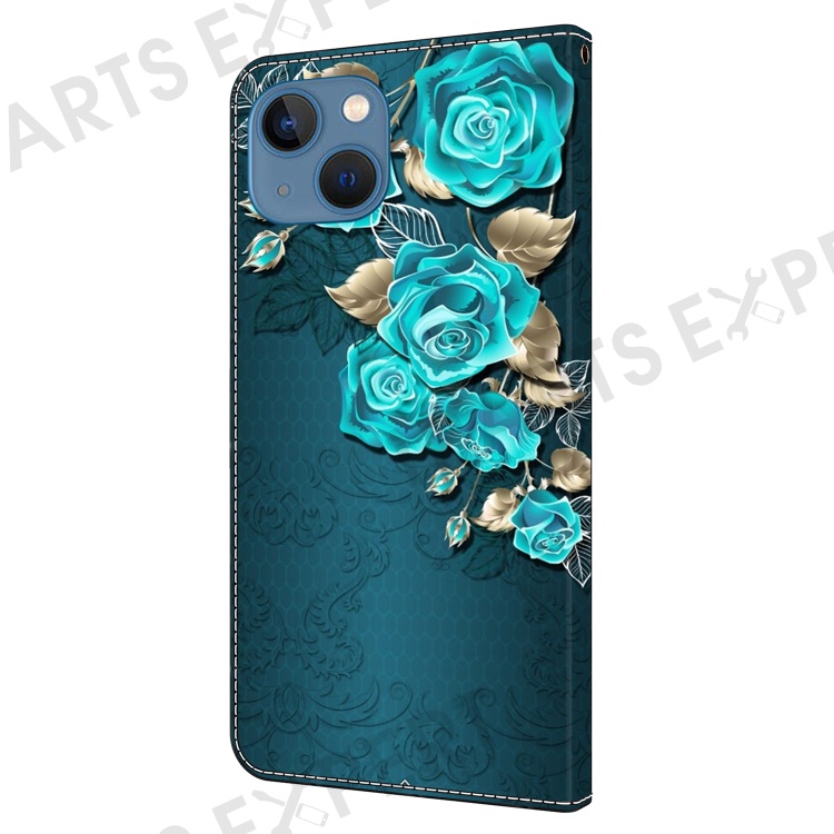 For iPhone 15 Plus Shockproof Case 3D Pattern Printing Leather Flip Phone Cover - Blue Rose