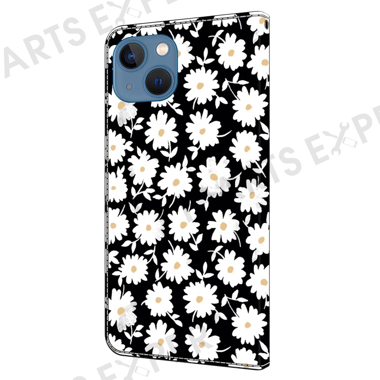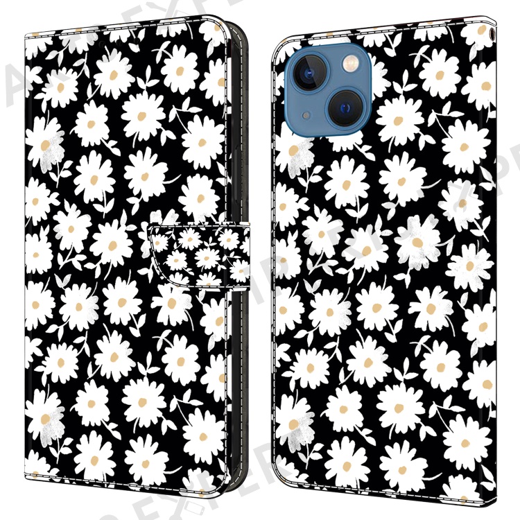For iPhone 15 Plus Shockproof Case 3D Pattern Printing Leather Flip Phone Cover - Floral
