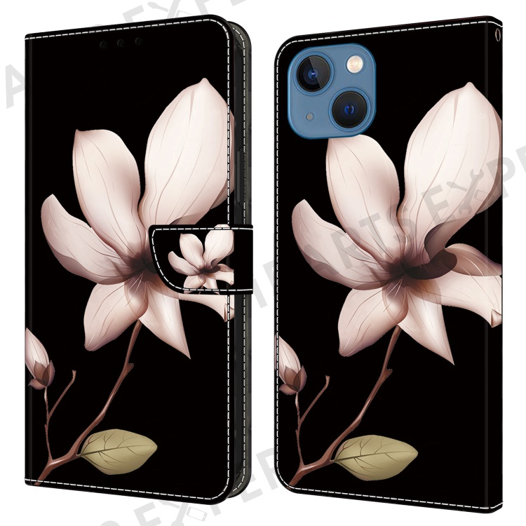 For iPhone 15 Plus Shockproof Case 3D Pattern Printing Leather Flip Phone Cover - Pink Flower