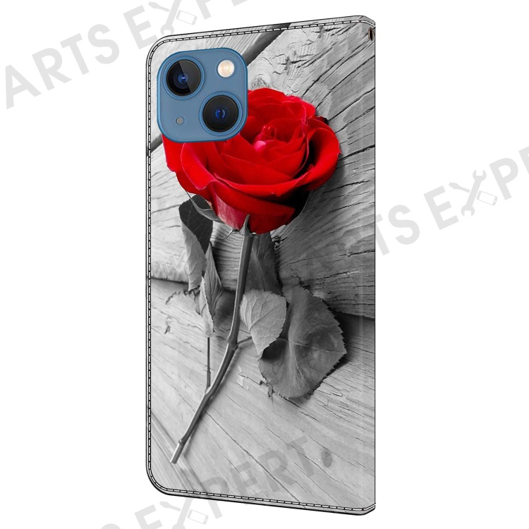 For iPhone 15 Plus Shockproof Case 3D Pattern Printing Leather Flip Phone Cover - Rose