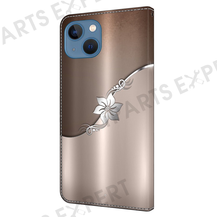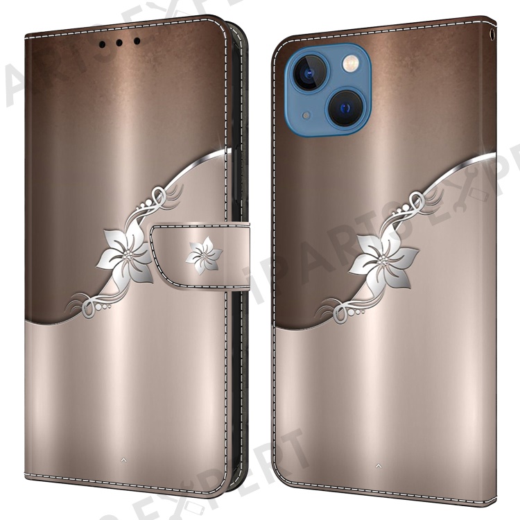 For iPhone 15 Plus Shockproof Case 3D Pattern Printing Leather Flip Phone Cover - Silver Flower