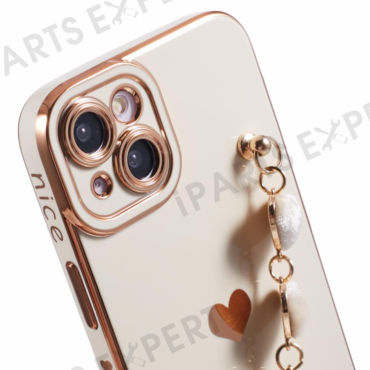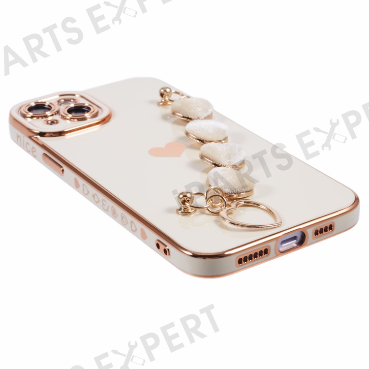 For iPhone 15 Plus Shockproof Case Electroplating TPU Phone Cover with Strap - White