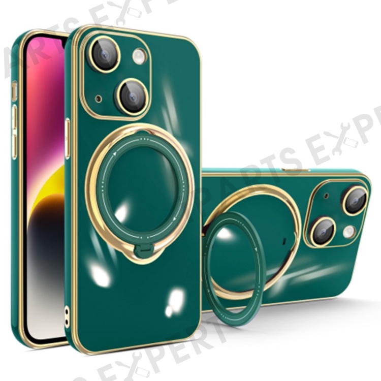 For iPhone 15 Plus TPU Phone Case Electroplating Kickstand Shockproof Protective Cover with Lens Film - Blackish Green