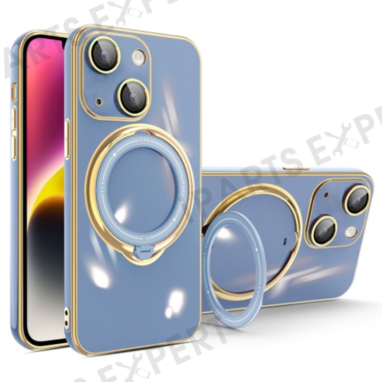 For iPhone 15 Plus TPU Phone Case Electroplating Kickstand Shockproof Protective Cover with Lens Film - Blue