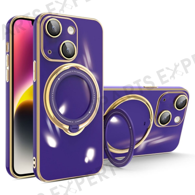 For iPhone 15 Plus TPU Phone Case Electroplating Kickstand Shockproof Protective Cover with Lens Film - Dark Purple