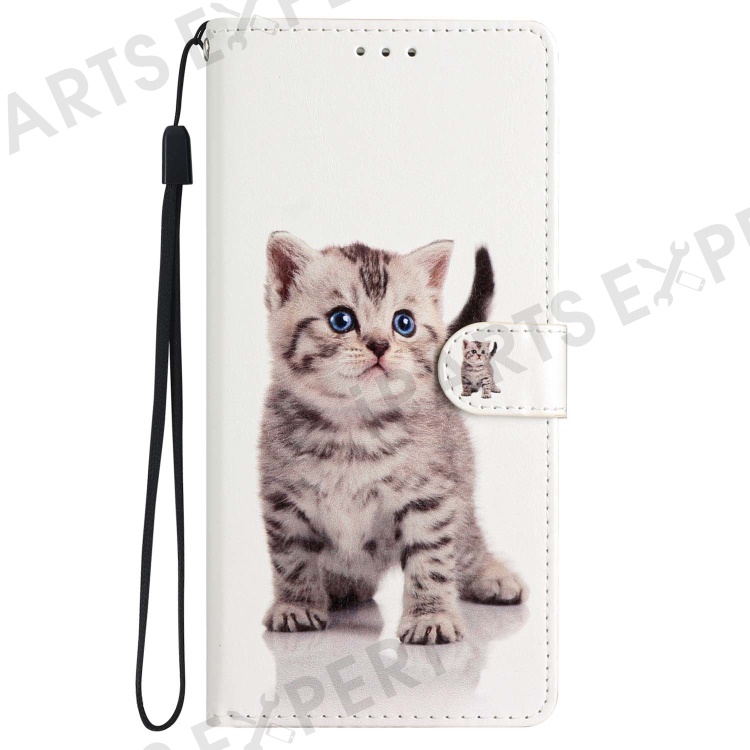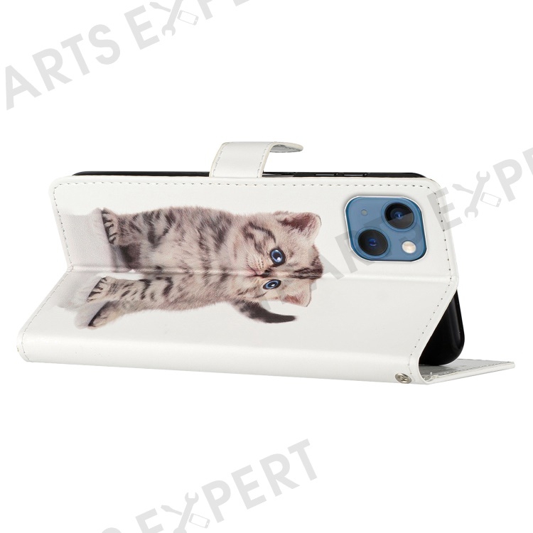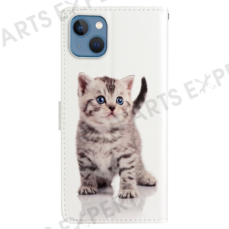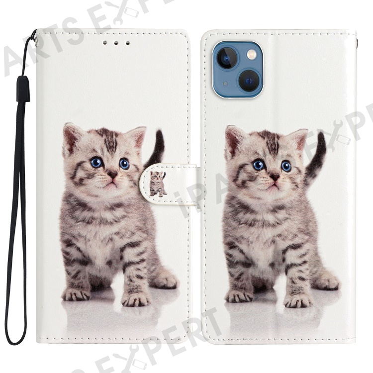 For iPhone 15 Plus Wallet Case PU Leather Pattern Printing Stand Phone Cover with Strap - Cute Cat