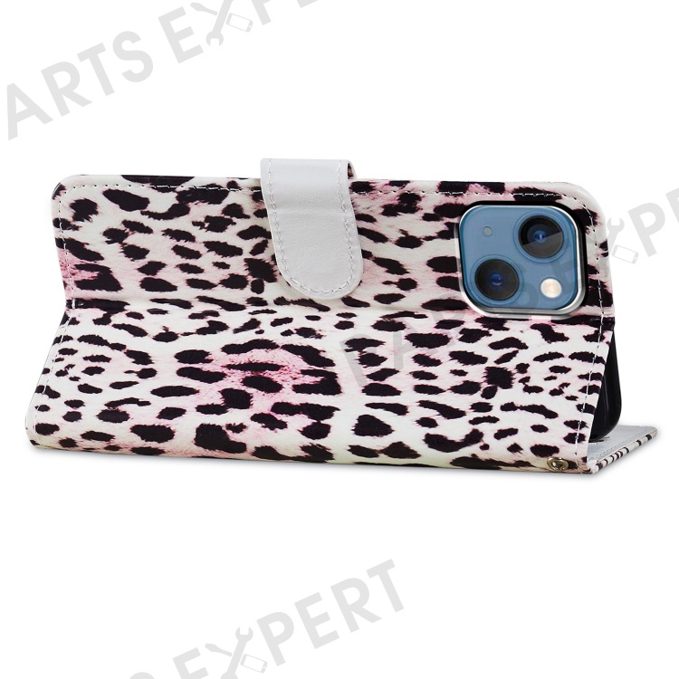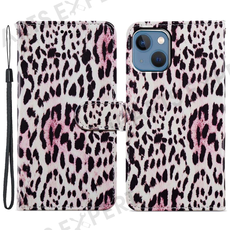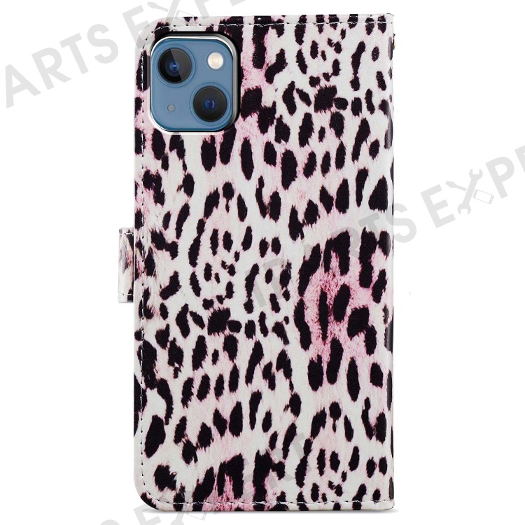 For iPhone 15 Plus Wallet Case PU Leather Pattern Printing Stand Phone Cover with Strap - Leopard