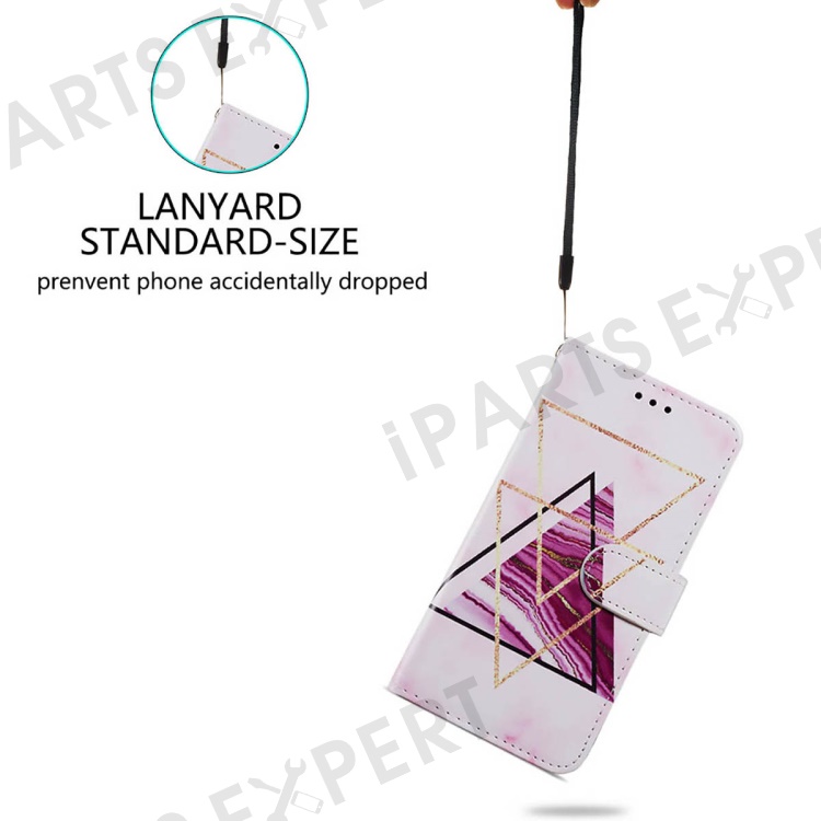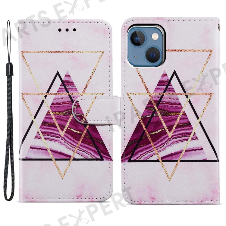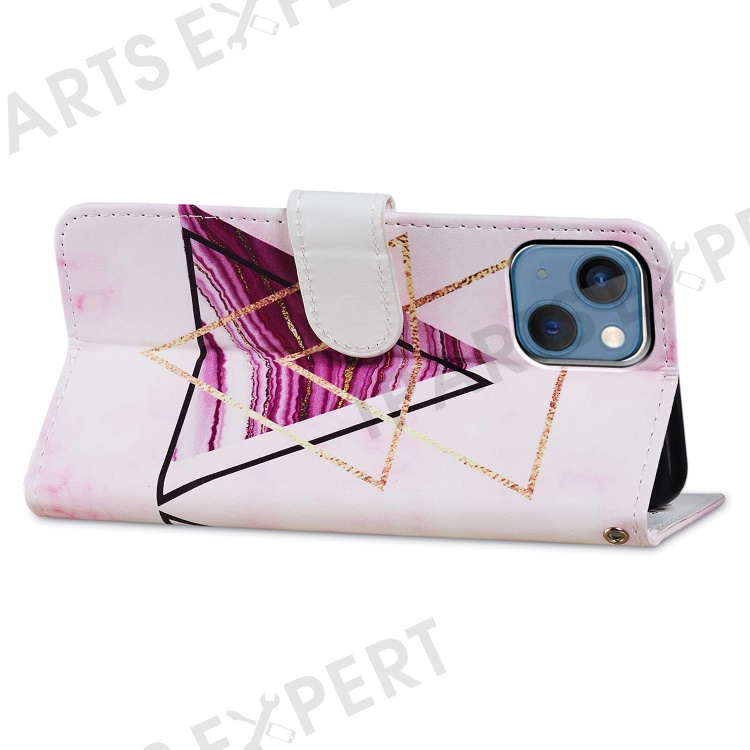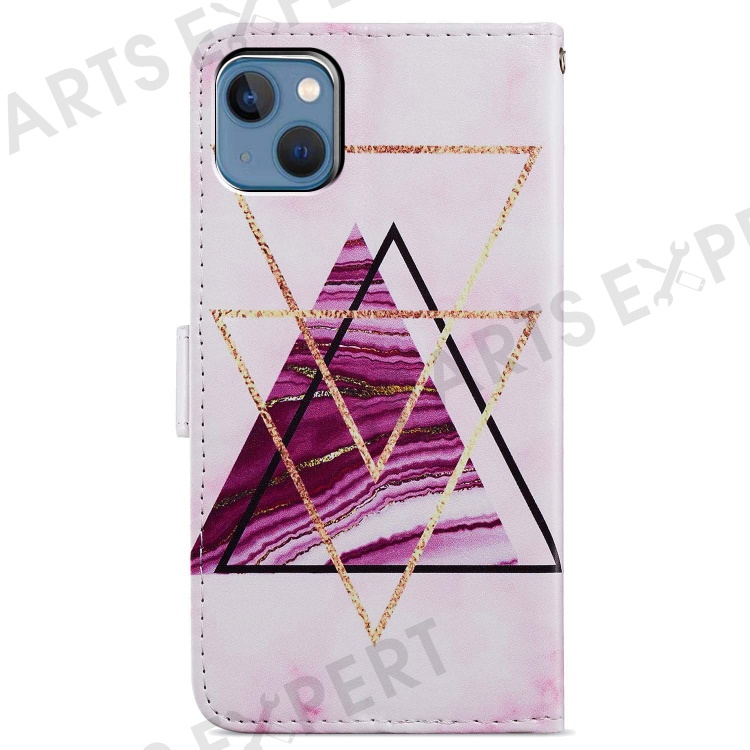 For iPhone 15 Plus Wallet Case PU Leather Pattern Printing Stand Phone Cover with Strap - Tri-color Marble