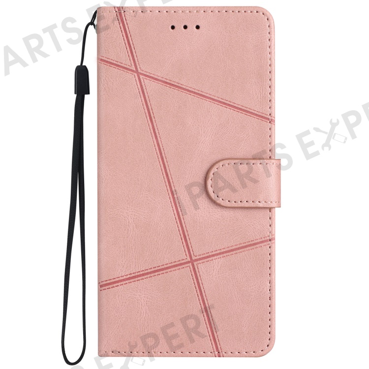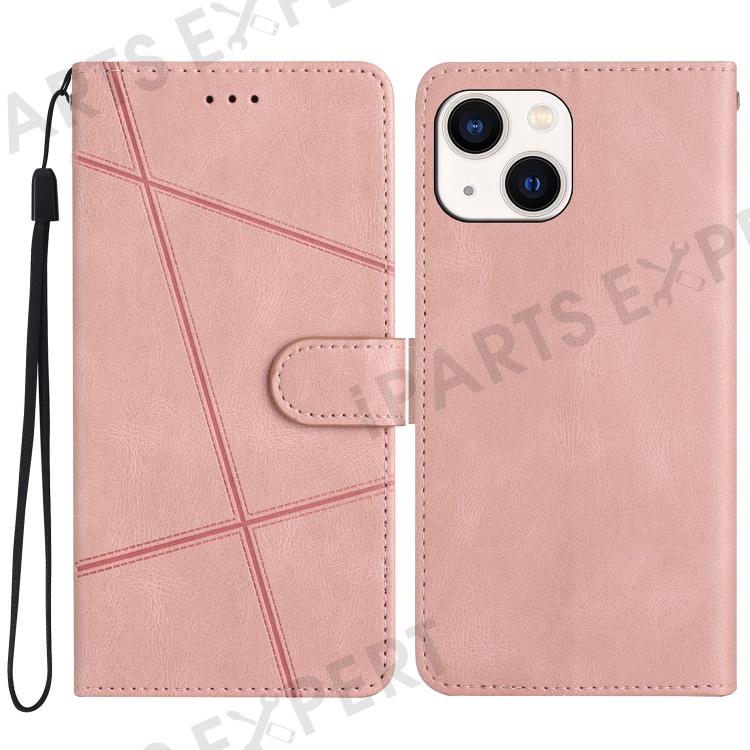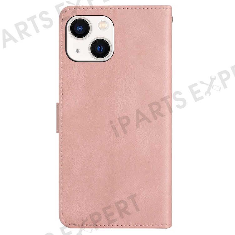 For iPhone 15 Plus Wallet Crazy Horse Texture Shell Phone Cover Imprinted Lines Leather Phone Stand Case - Rose Gold