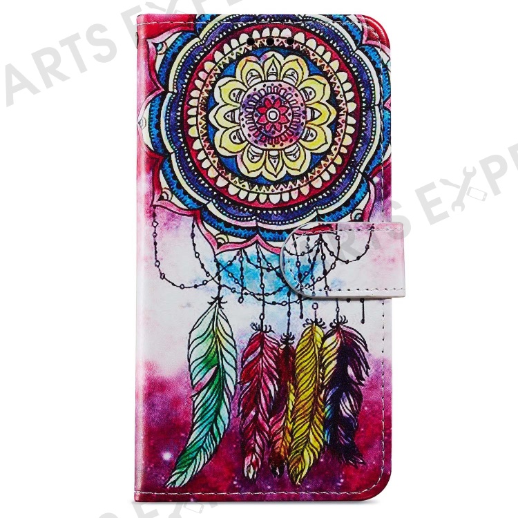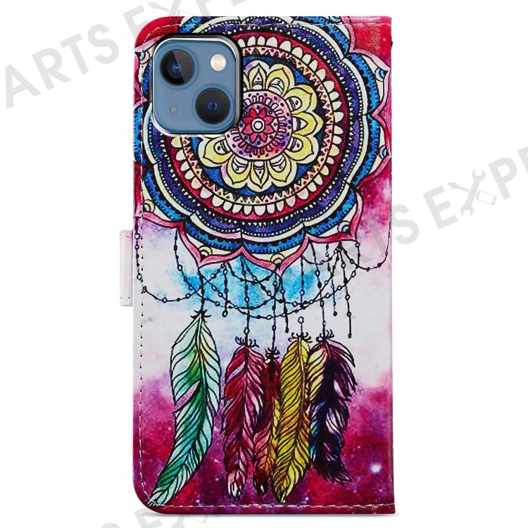 For iPhone 15 PU Leather Flip Cover Wallet Stand Pattern Printing Phone Case with Strap - Dream Catcher