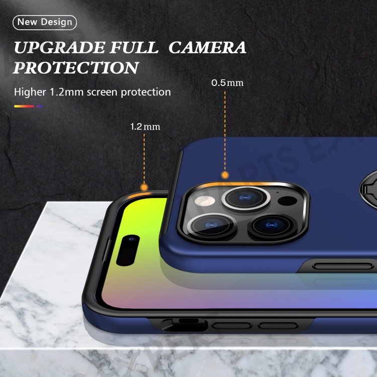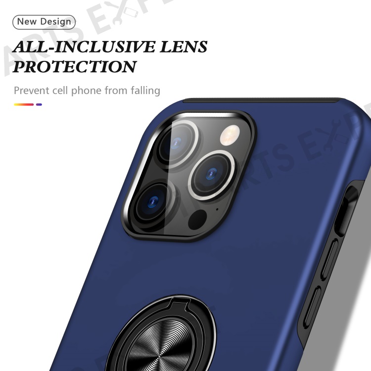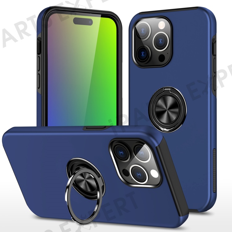 For iPhone 15 Pro Anti-drop Phone Case Ring Holder Kickstand PC+TPU Phone Back Cover - Blue