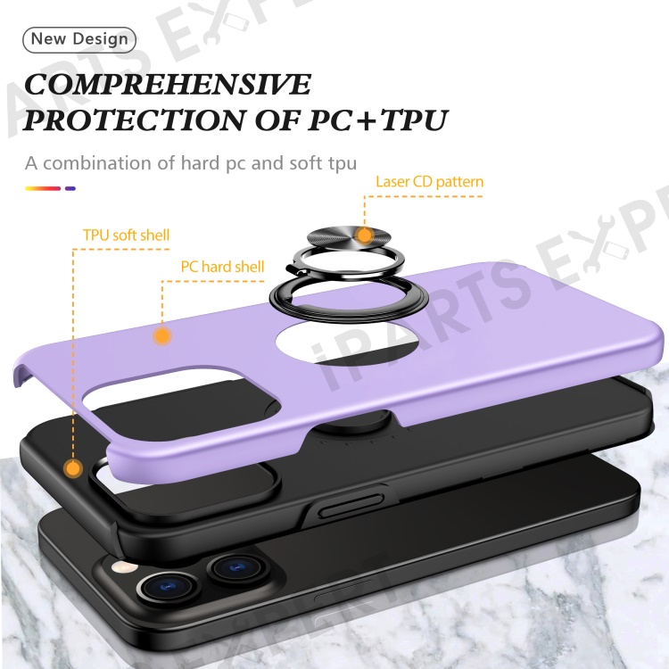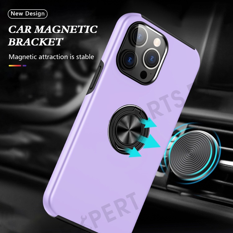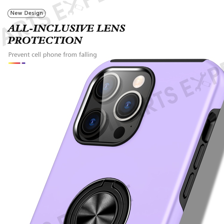 For iPhone 15 Pro Anti-drop Phone Case Ring Holder Kickstand PC+TPU Phone Back Cover - Purple