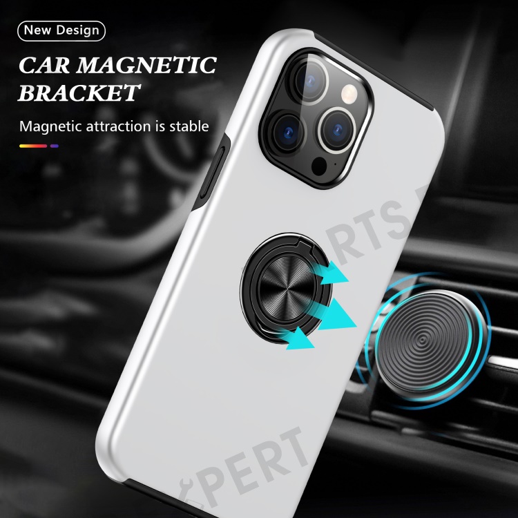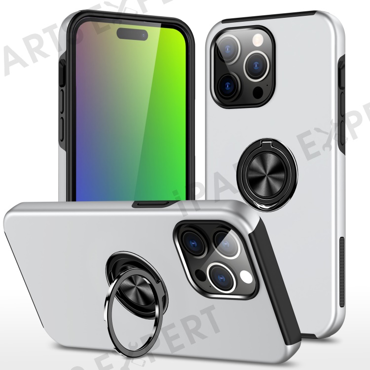 For iPhone 15 Pro Anti-drop Phone Case Ring Holder Kickstand PC+TPU Phone Back Cover - Silver