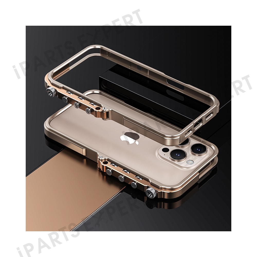 For iPhone 15 Pro Bumper Case Aluminum Alloy Metal Frame Phone Cover - Gold
