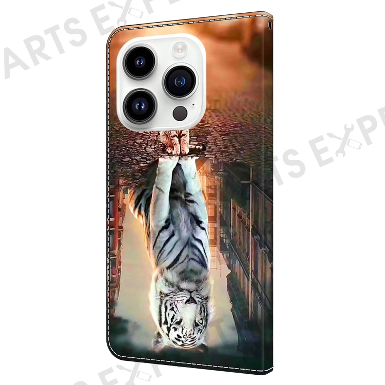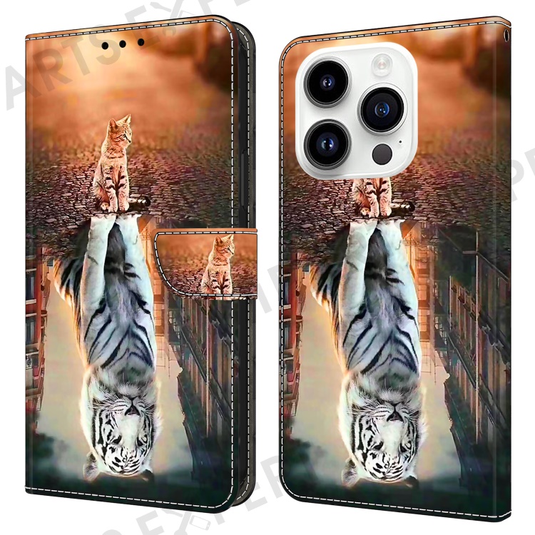 For iPhone 15 Pro Case 3D Pattern Printing Leather Wallet Phone Case - Cat and Tiger