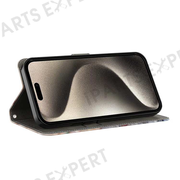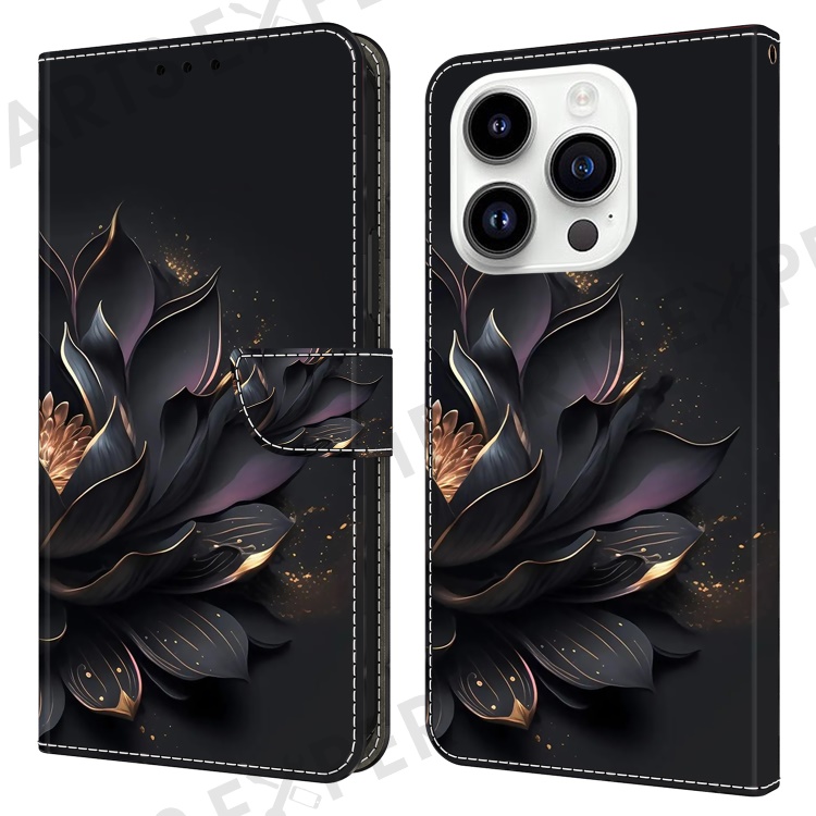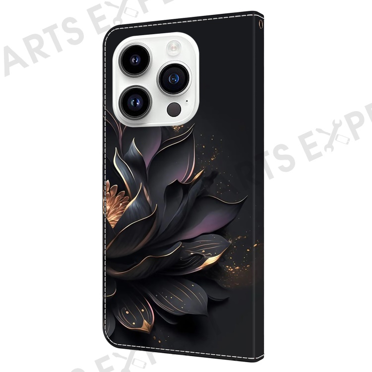 For iPhone 15 Pro Case 3D Pattern Printing Leather Wallet Phone Case - Purple Lotus