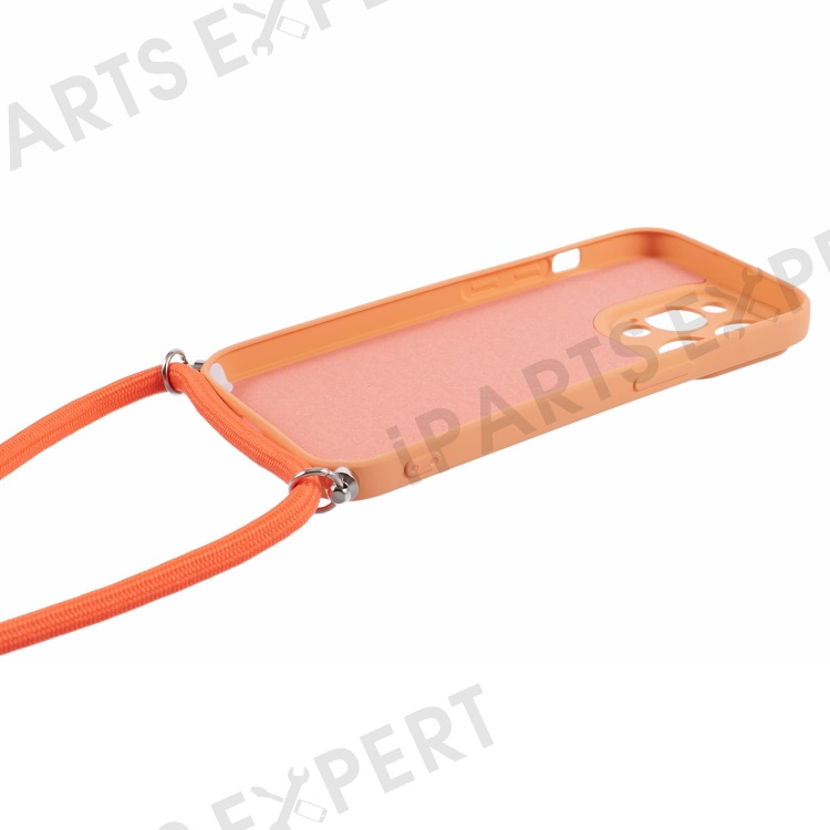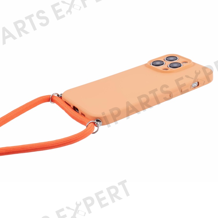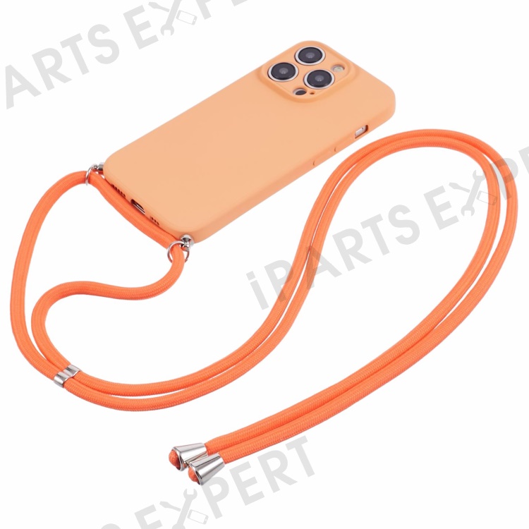 For iPhone 15 Pro Case Candy Color Rubberized Phone Cover with Long Lanyard - Orange