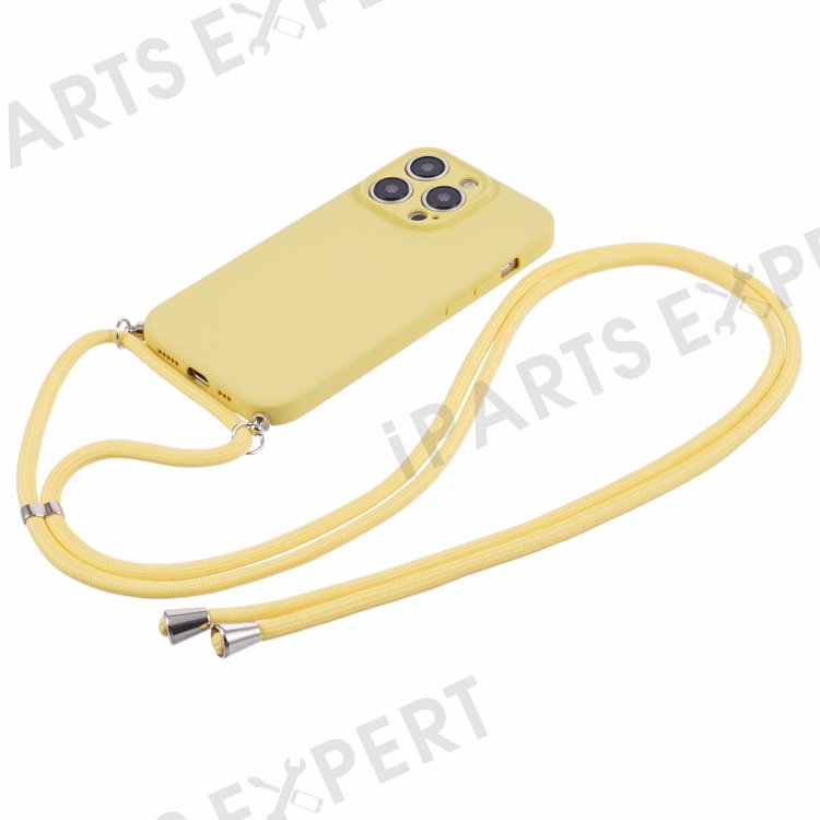 For iPhone 15 Pro Case Candy Color Rubberized Phone Cover with Long Lanyard - Yellow