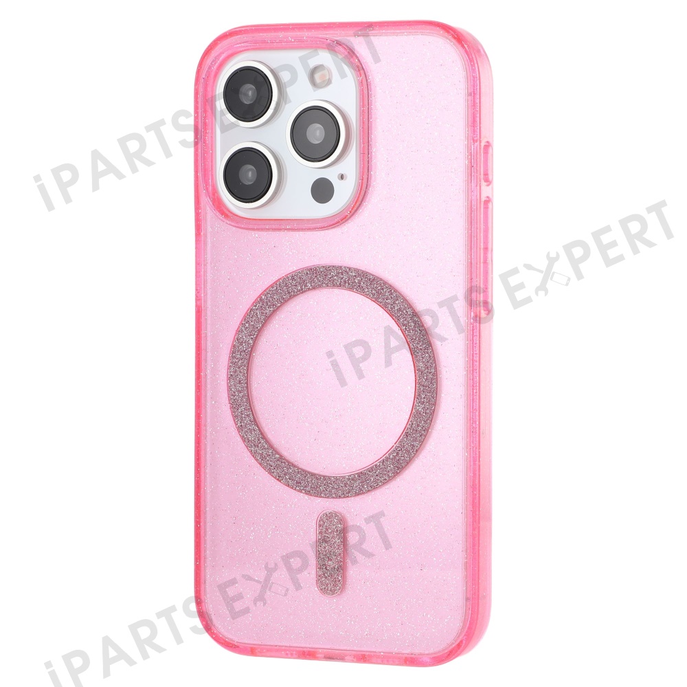 For iPhone 15 Pro Case Compatible with MagSafe 2.0mm PC + TPU Glitter Phone Cover - Pink