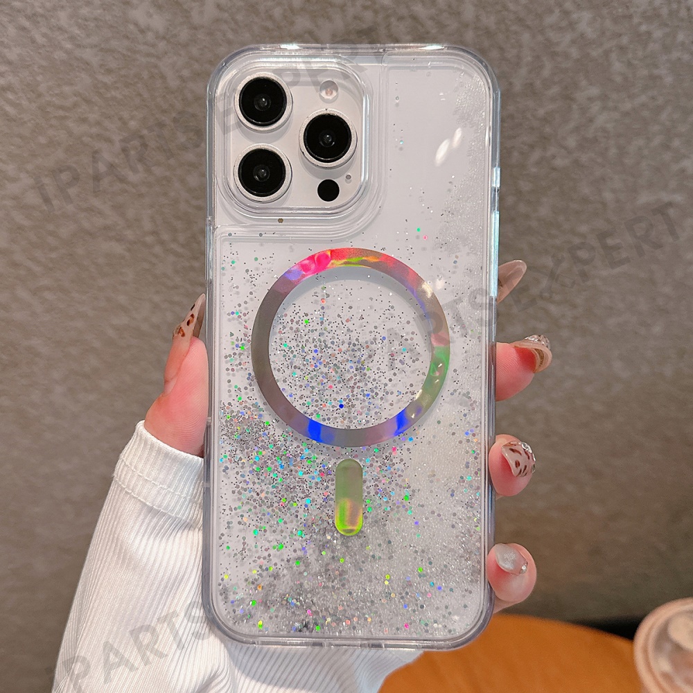 For iPhone 15 Pro Case Compatible with MagSafe Electroplated Quicksand PC + TPU Phone Cover - White