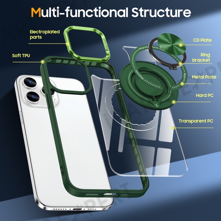 - 【Multi-Layered Structure】This case combines multiple materials, including electroplated soft TPU, hard PC, and a metal ring bracket, for a robust and multifunctional design