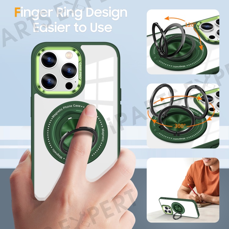 For iPhone 15 Pro Case Compatible with MagSafe Ring Kickstand Clear PC+TPU Phone Cover - Blackish Green