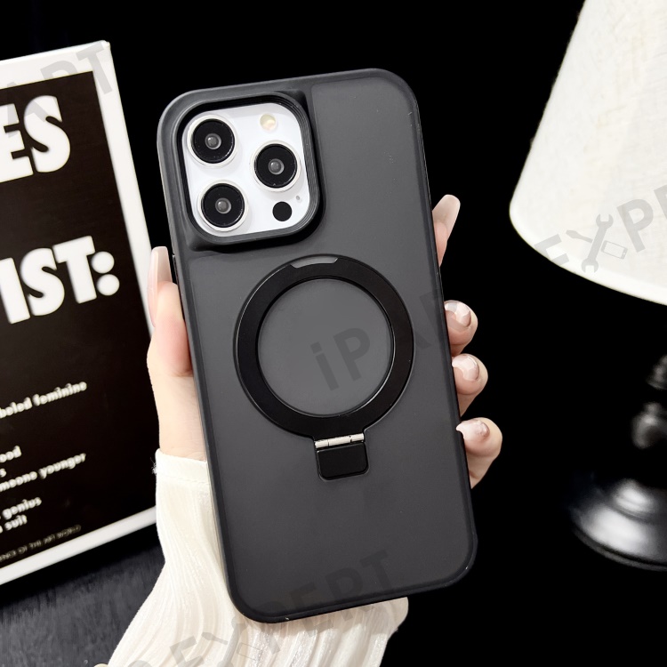 For iPhone 15 Pro Case Compatible with MagSafe Skin-Touch TPU+PC Kickstand Phone Cover - Black