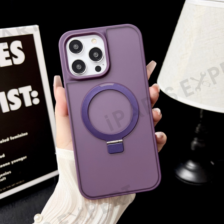 For iPhone 15 Pro Case Compatible with MagSafe Skin-Touch TPU+PC Kickstand Phone Cover - Dark Purple