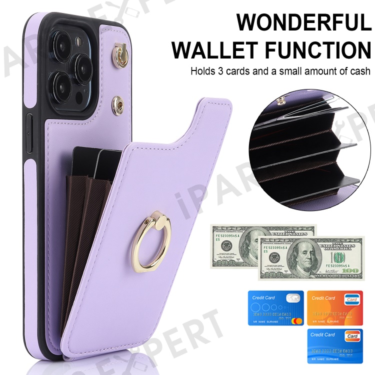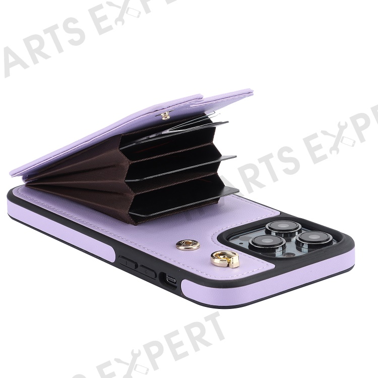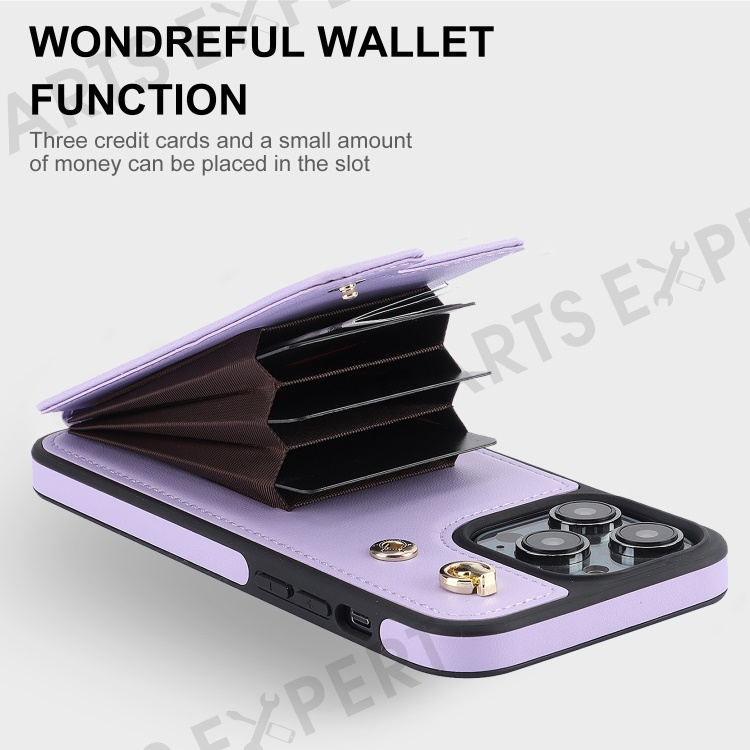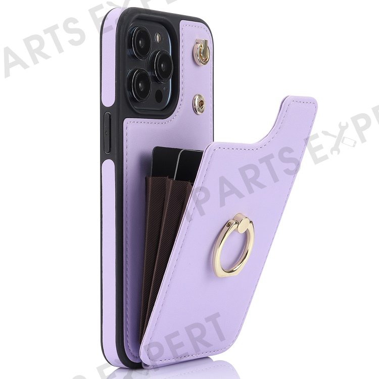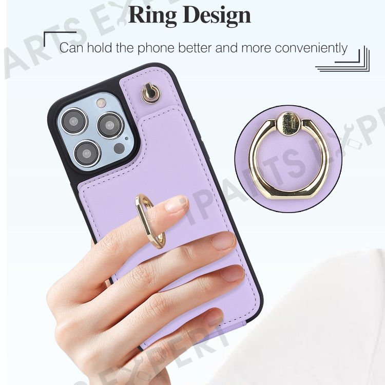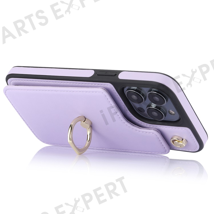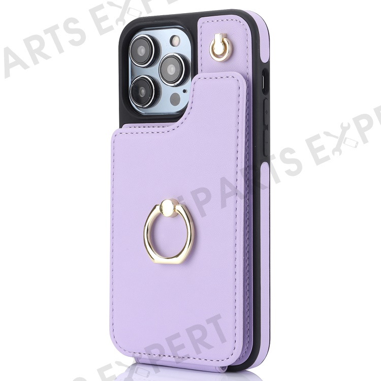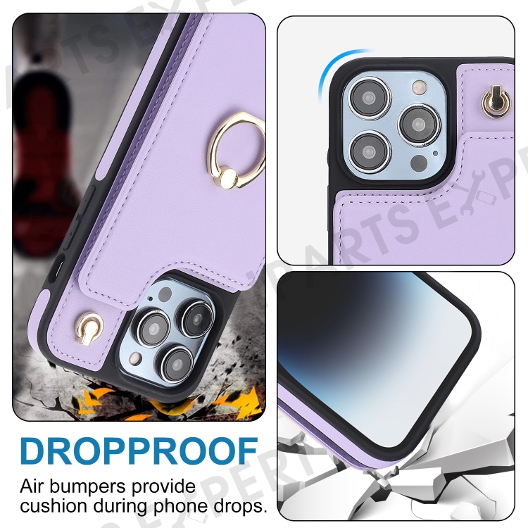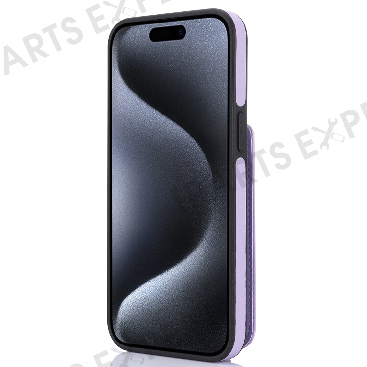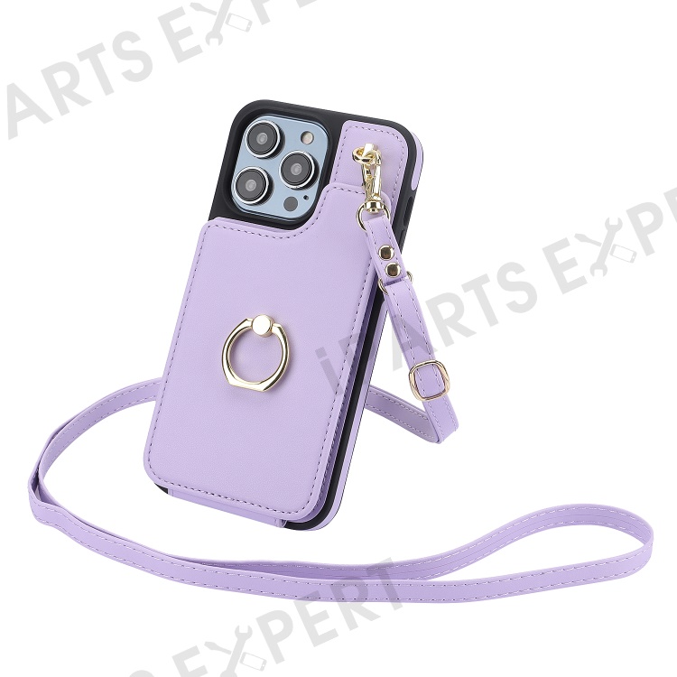 For iPhone 15 Pro Case Crossbody PU Leather+TPU Card Holder Phone Cover with Shoulder Strap - Light Purple