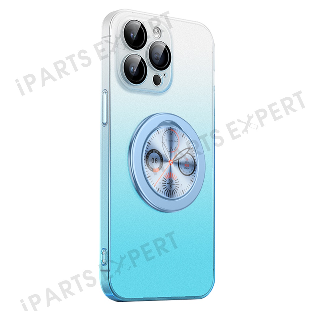 For iPhone 15 Pro Case Dial Kickstand Gradient Color Hard PC Phone Case - Blue