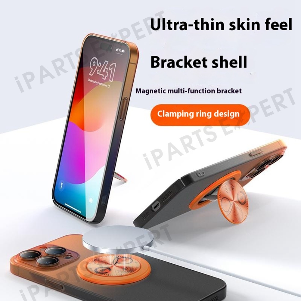 For iPhone 15 Pro Case Dial Kickstand Gradient Color Hard PC Phone Case - Matte White