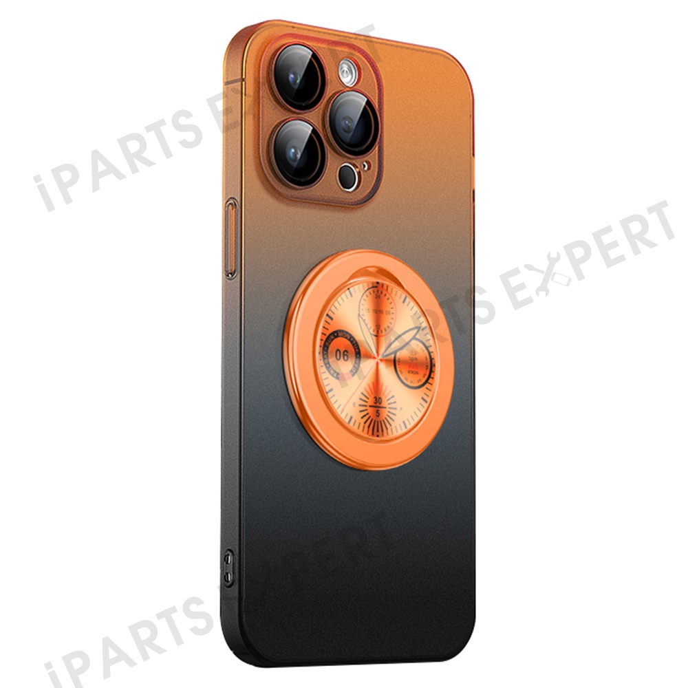 For iPhone 15 Pro Case Dial Kickstand Gradient Color Hard PC Phone Case - Orange + Black