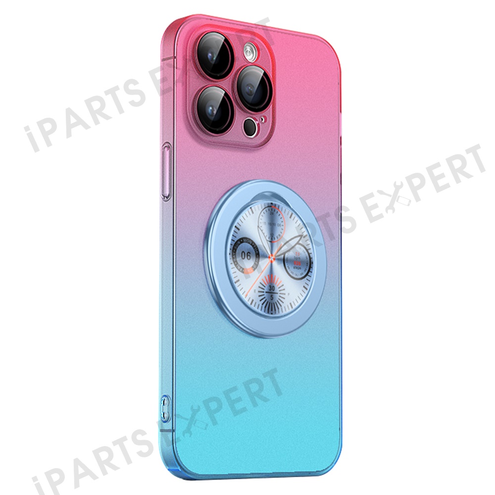 For iPhone 15 Pro Case Dial Kickstand Gradient Color Hard PC Phone Case - Pink + Blue