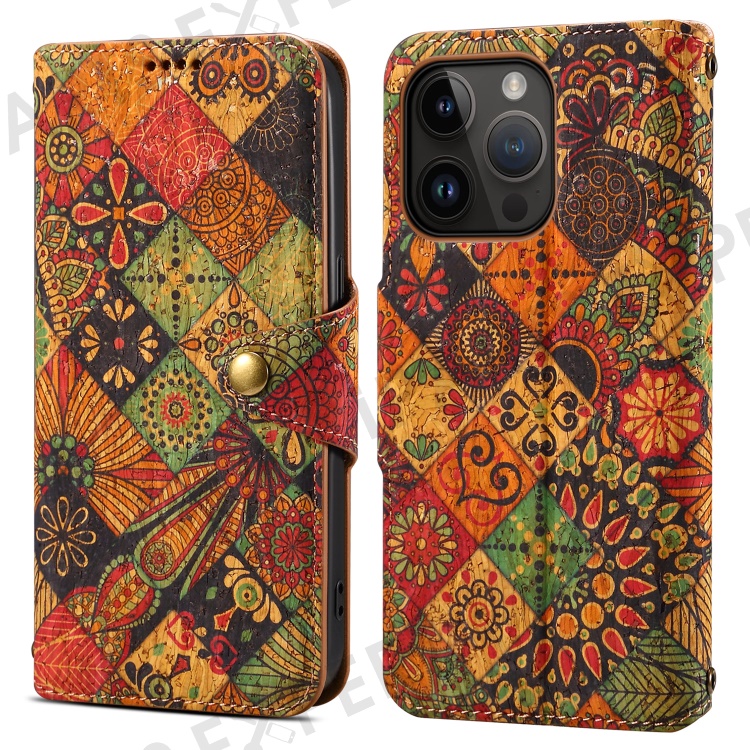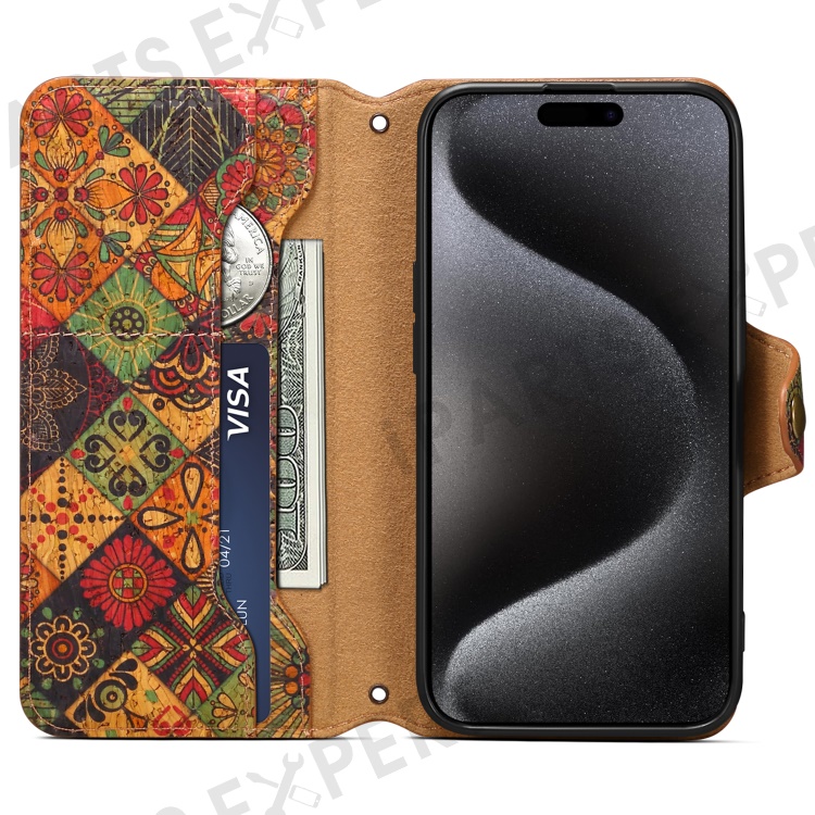 For iPhone 15 Pro Case Flower Pattern PU Leather Wallet Phone Cover with Stand - Autumn