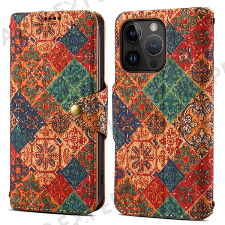 For iPhone 15 Pro Case Flower Pattern PU Leather Wallet Phone Cover with Stand - Winter