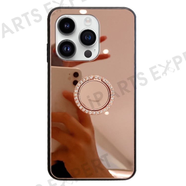 For iPhone 15 Pro Case Mirror Surface TPU + PC Finger Ring Kickstand Phone Cover - Rose Gold